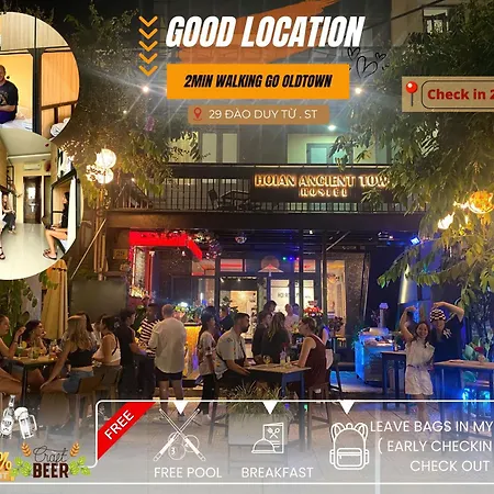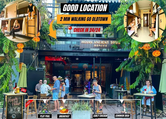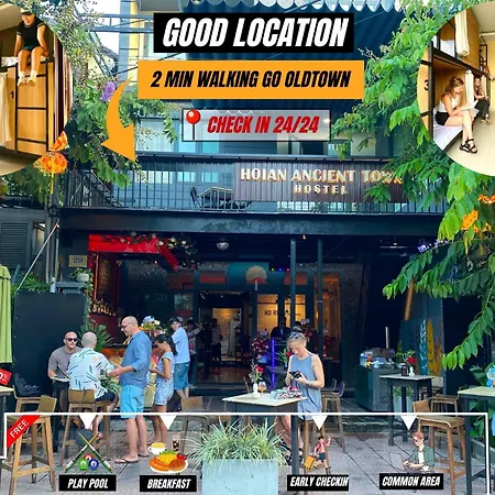 Hoi An Ancient Town & Barホステルは、来遠橋(日本橋)から歩いてわずか9分に位置し、テラスでリラックスできます。